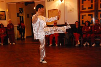 Un alumno de la Escuela Choy Lee Fut hace una demostración de la forma 42 de Tai Chi Chuan
